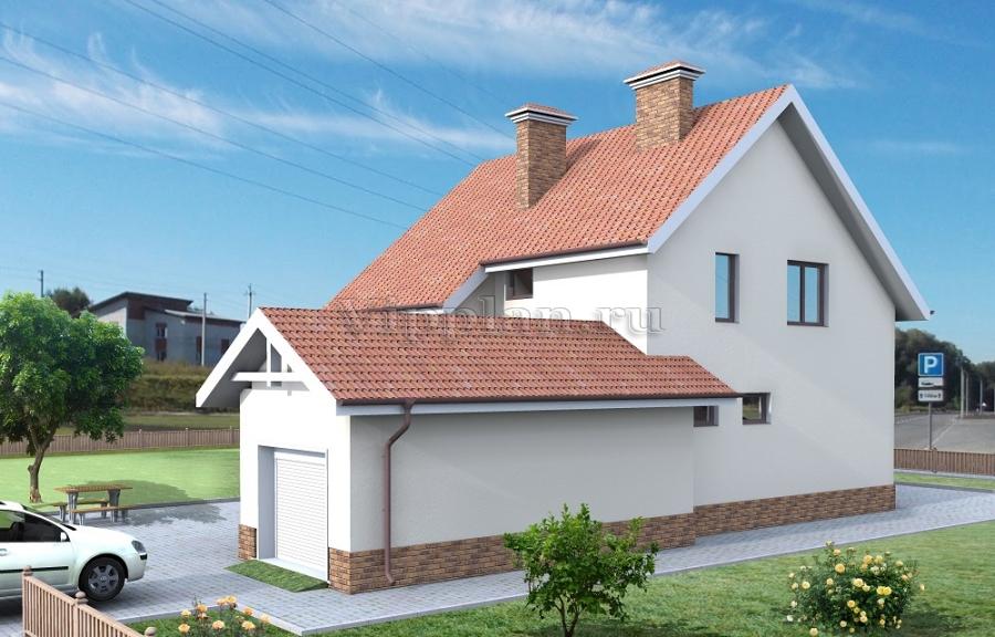 Проект индивидуального одноэтажного жилого дома с мансардой с размерами 10,72 x 16,42 м.