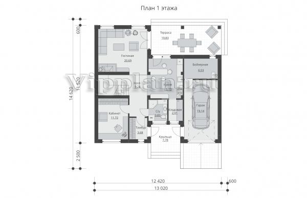 | Размеры дома: | 12.42м×11.52м |